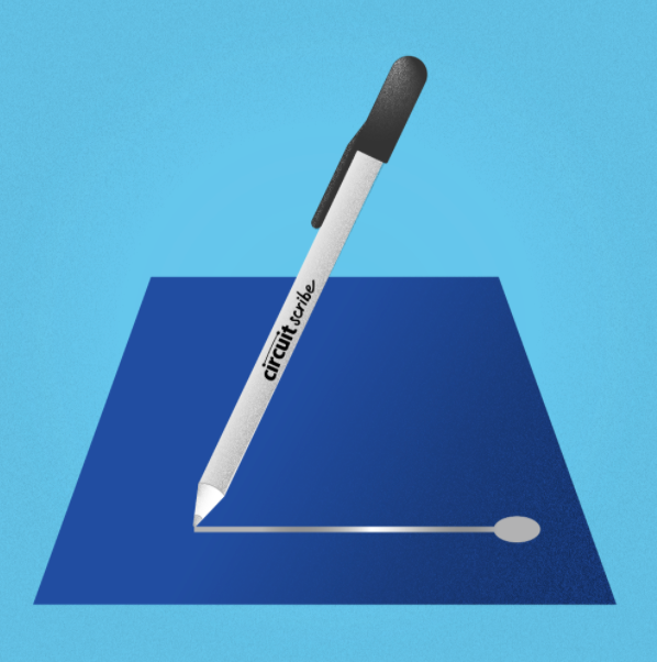 Every creation begins with our conductive ink pen. This pen contains actual liquid silver, enabling you to draw circuits on paper. It’s non- toxic, dries instantly, and is a hands-on approach to circuitry.
